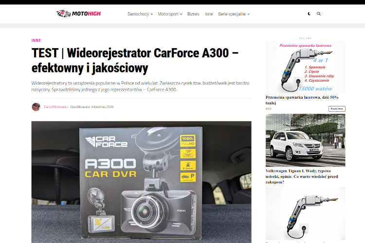 RecenzjeProduktow.pl > Recenzje wideorejestratorów CarForce 2024-08-22 Recenzje wideorejestratorów CarForceRecenzjami wsparliśmy wejście na polski rynek nowej marki widorejestratorów CarForce.CarForce to polska marka kamerek samochodowych o prostej obsłudze i przystępnej cenie.